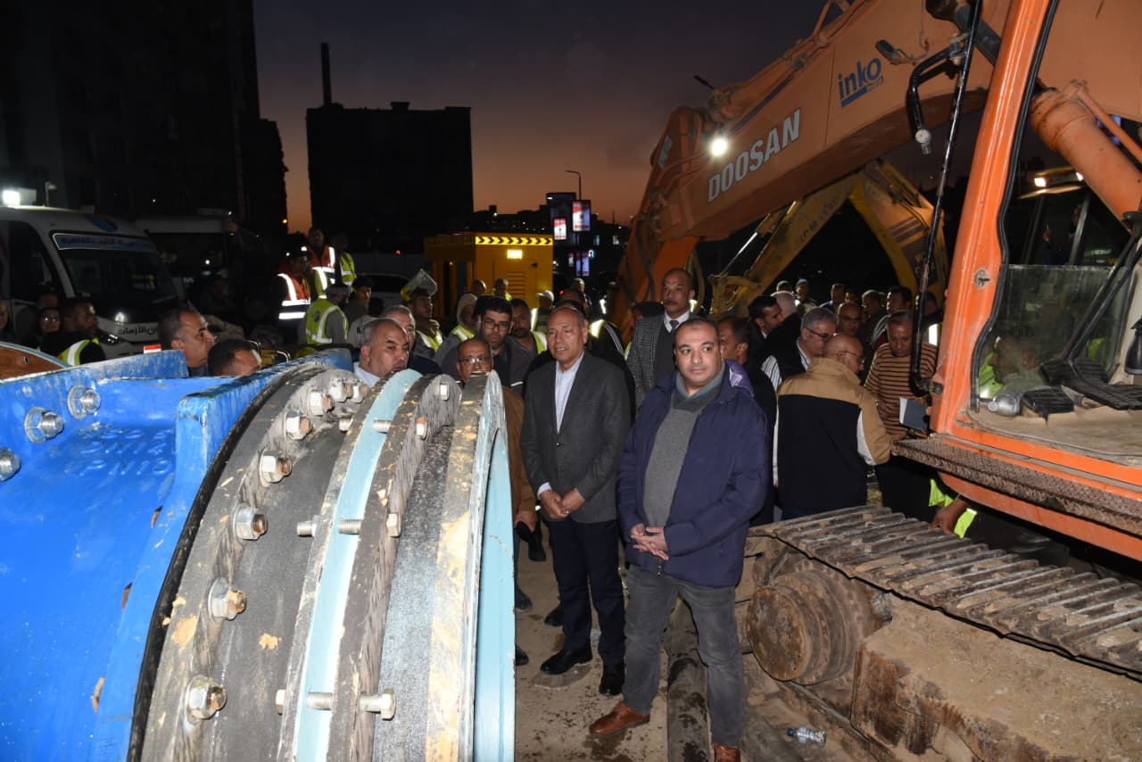 وطالب محافظ القاهرة بسرعة الانتهاء من الأعمال فى الموعد المحدد لها فى الرابعة عصر الغد، مع تكثيف كافة إمكانيات الشركة من معدات و مهندسيين وفنيين وعمال للعمل على سرعة نهو الأعمال فى أقرب وقت وعودة المياه.