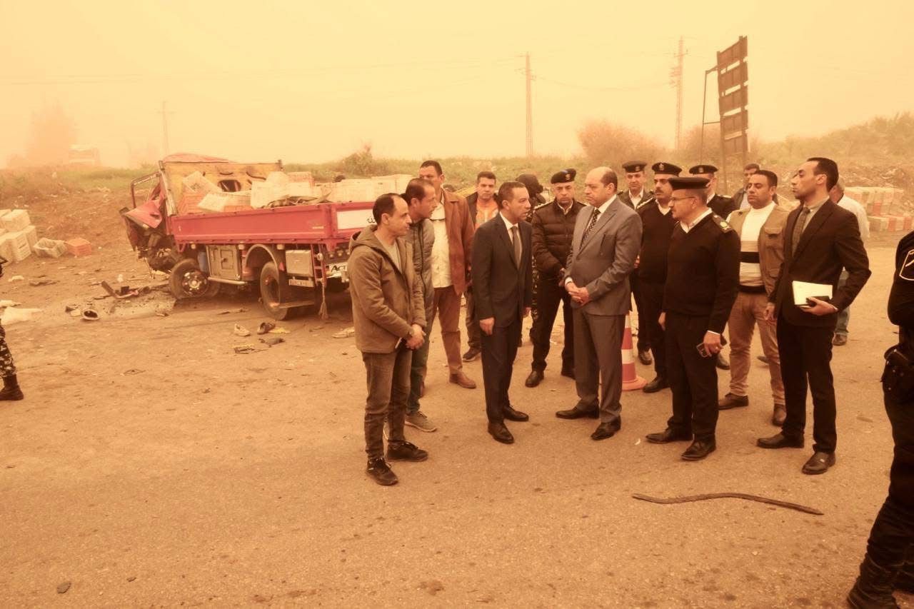 فور الإبلاغ عن وقوع حادث تصادم بالسادات ، توجه علي الفور اللواء عمرو الغريب محافظ المنوفية لموقع الحادث في تمام السابعة صباحا لمتابعة تداعيات الحادث وتقديم الدعم اللازم بحضور اللواء علاء الجاحر مساعد وزير الداخلية مدير أمن المنوفية ومدير أدارة المرور ورئيس مركز ومدينة السادات .